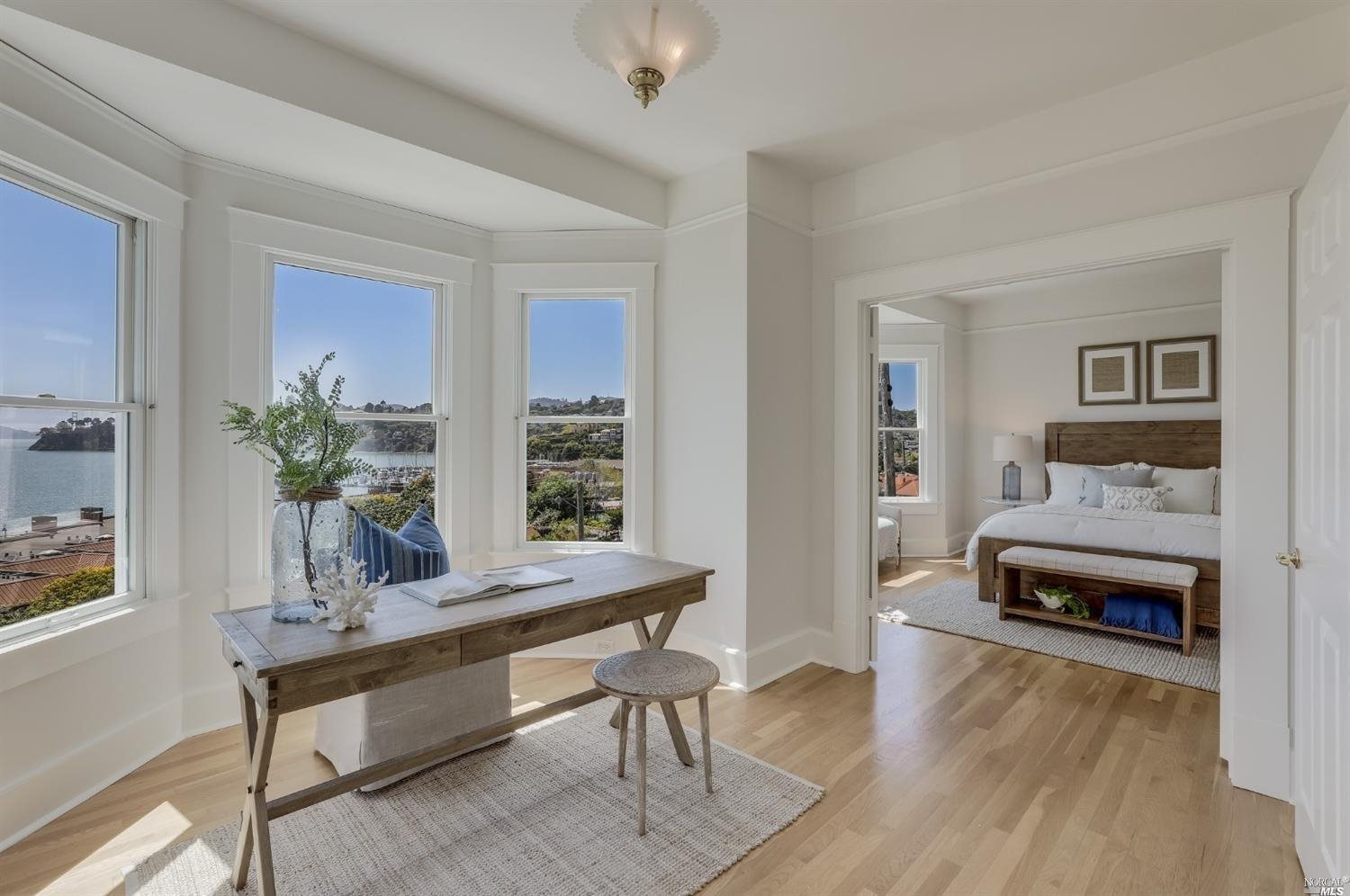 Desirable Old Town Tiburon location with awesome views spanning San Francisco, the Golden Gate Bridge, Belvedere Island & downtown Tiburon. Enjoy the sweeping views from the sunny South facing view deck. There is also a private rear yard, and patio. The main level features the living room, kitchen, dining room, family room, 1/2 bath, and laundry room. The Chef's kitchen has marble countertops, a center island with prep sink & high-end appliances. The upper level features a spacious primary suite with connecting office, and a 2nd bedroom with private bath. The lower level features a 3rd bedroom perfect for a home office, media room, guest suite, or au-pair with a full bathroom & two separate entrances from the outside. 1 car garage, 2 additional off-street spaces. An easy stroll to Tiburon's Shoreline park & downtown Tiburon's Main Street and commute ferry to San Francisco. Unfurnished.