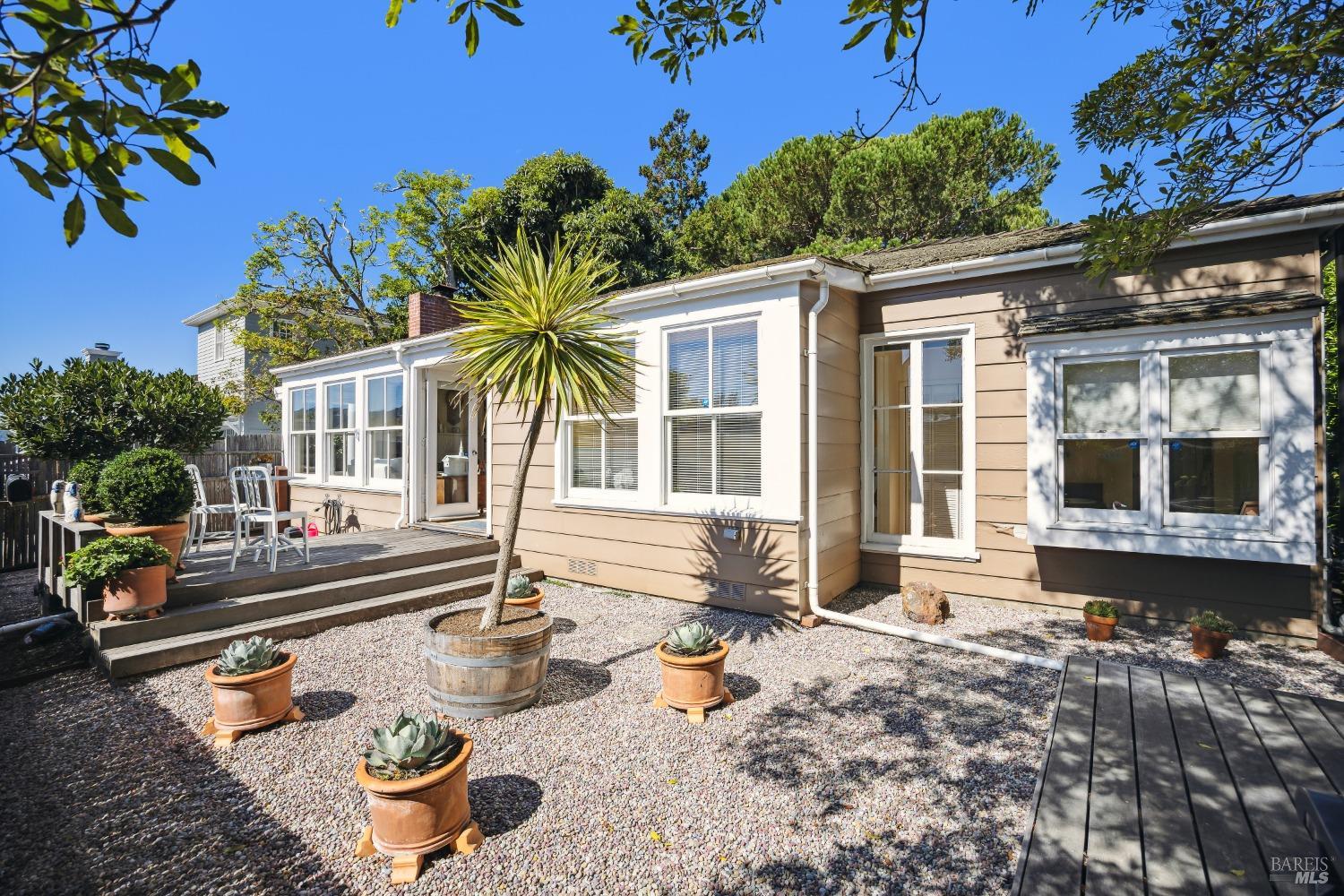 Available for the first time in over 5 decades, this one level home in the flats of Belvedere exudes charm and character.Unique architectural details, wood floors & a chic Farmhouse kitchen.Large windows & strategically placed skylights bring sunlight inside.Living room features include a fireplace, built-in shelving, french doors opening to a deck & low maintenance yard.Dining room and kitchen open to the level back yard with an expansive artificial lawn and towering privacy hedges offers ample room for play and entertaining.Built in 1942 and lovingly refined, the home shows pride of ownership.Other highlights include Dutch doors, mature landscaping, car port and accessible attic with ample storage. A separate spacious structure offers versatility of use for a new owner.Adjacent to the shoreline walking path and Richardson Bay, top rated schools, ferries, yacht clubs and town are all easily accessible. A rare opportunity to own a home in this desirable location.